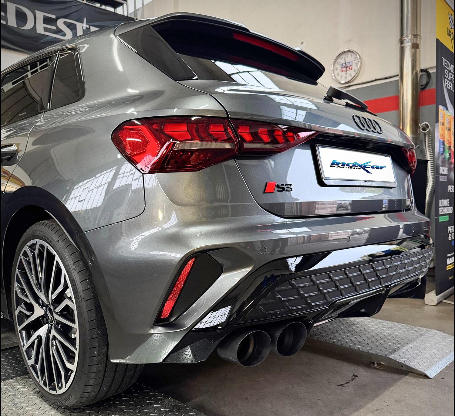 Inoxcar a développé un nouveau système d’échappement pour l’ AUDI S3 (Type GY) 2.0 TFSI (333cv) 04/2024–, en realizand le tube remplacement catalyseur et GPF/OPF filtre disponible avec ou sans catalyseur 200 CPSI, et une catback en diam. 70mm que comprend le tube intermédiaire et le silencieux arrière avec systeme vannes disponible avec la double sortie diam. 100 RACING DX+SX / BLACK CERAMIC DX+SX.