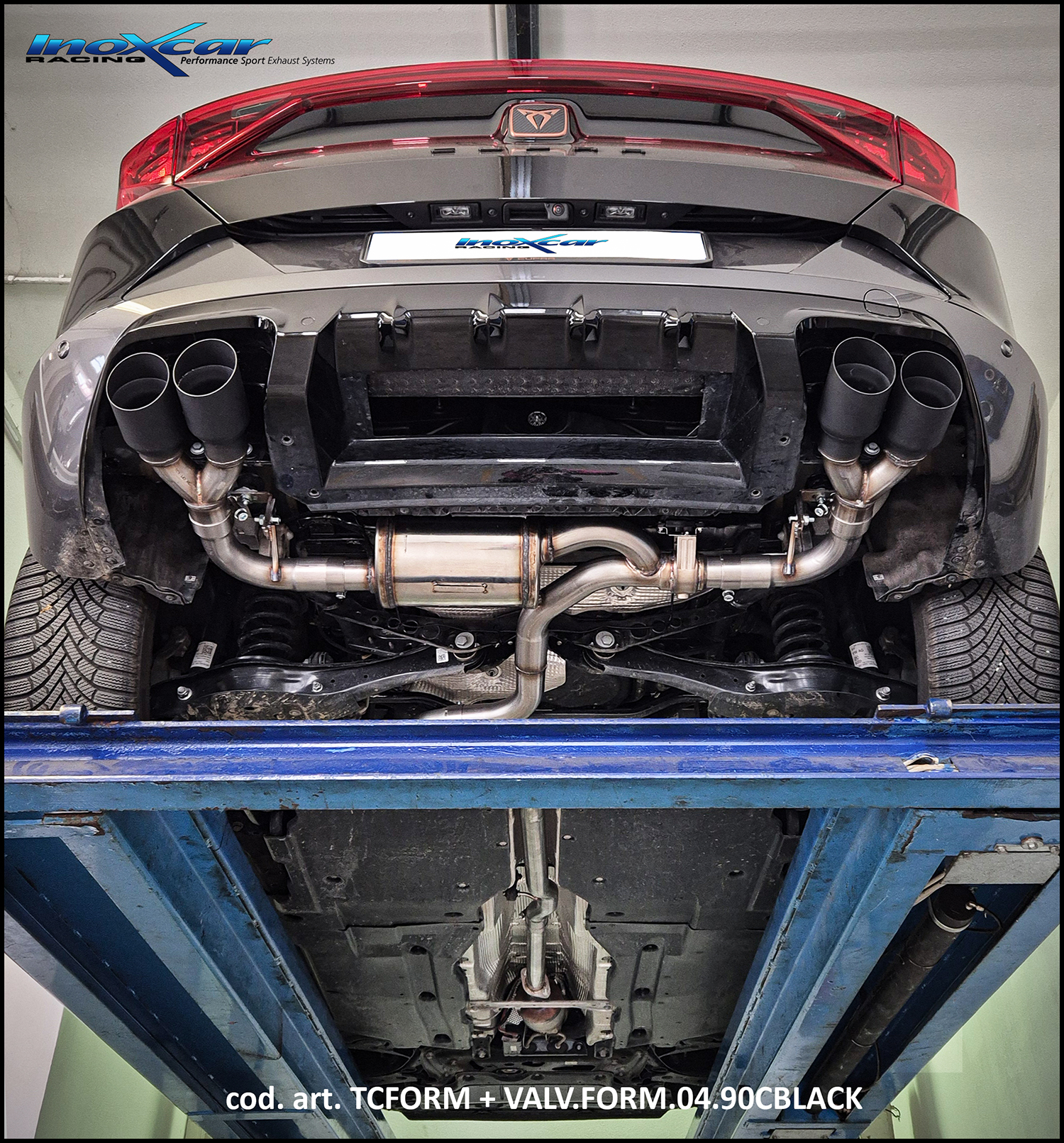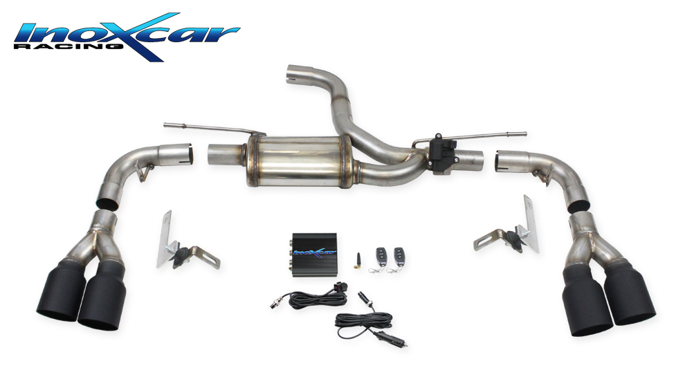 Arrière silencieux DUPLEX avec sortie 2 x diam. 90 RACING BLACK CERAMIC DX+SX + Vanne avec moteur électrique + télécommande