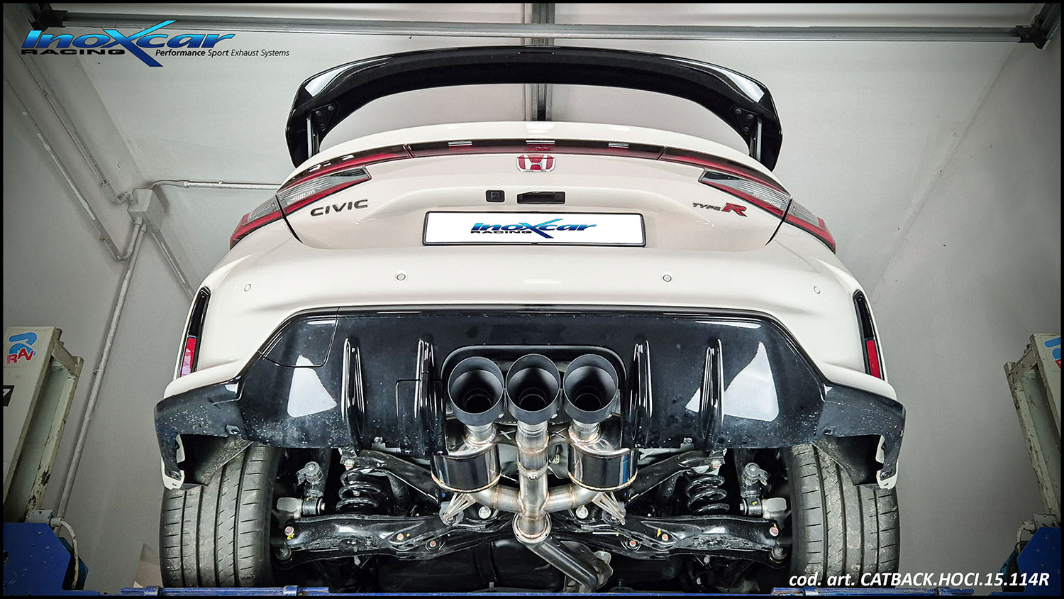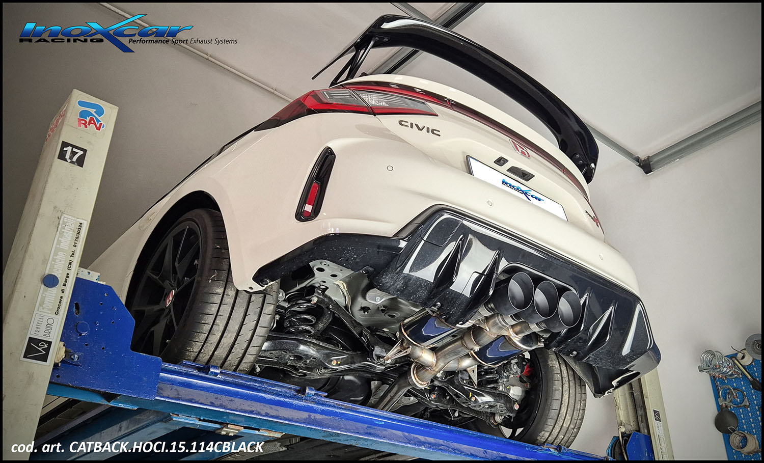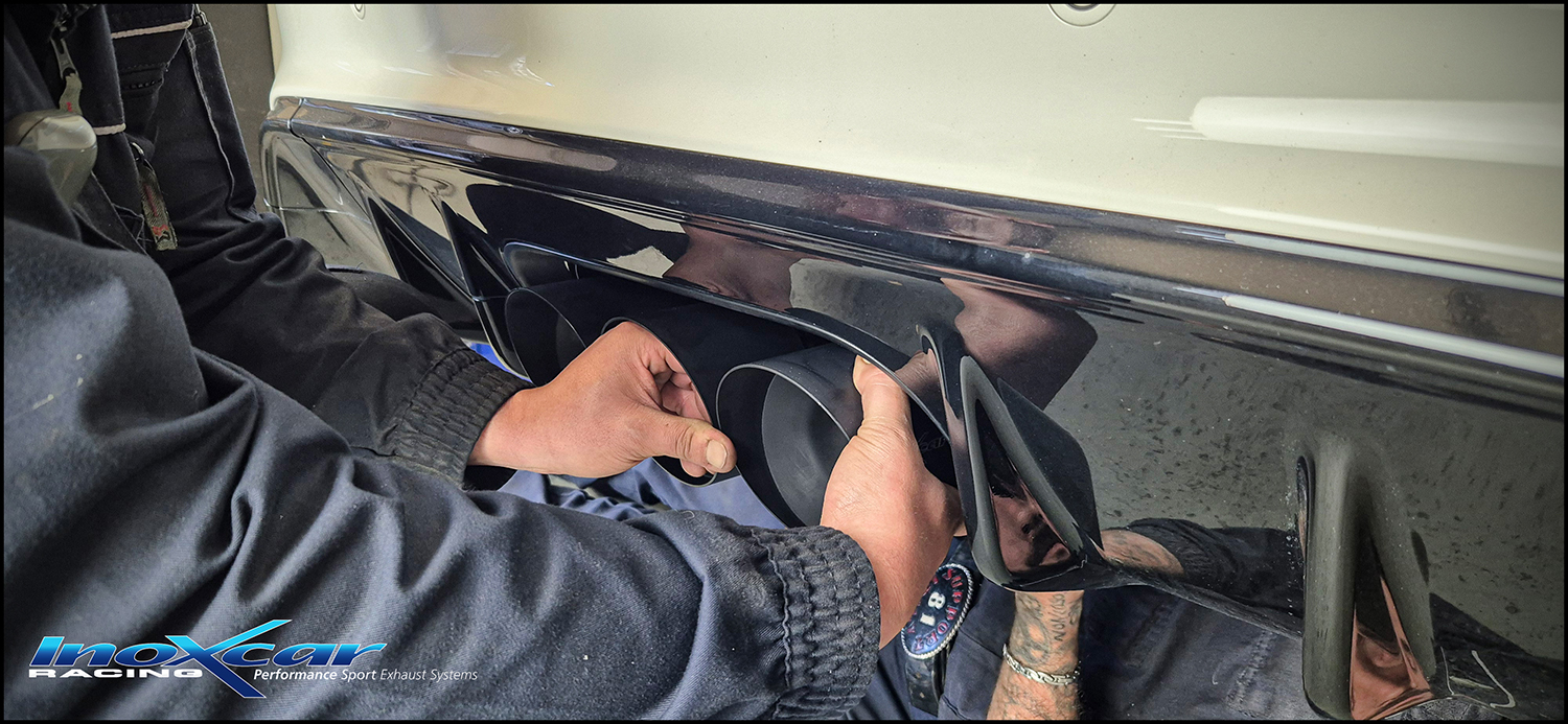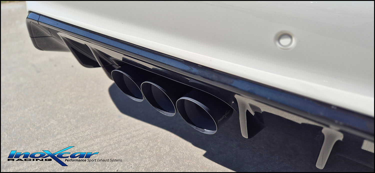 Tube central silencieux + Silencieux arrière avec sorties centrales 3 x diam. 114 RACING BLACK CERAMIC + Vanne avec montage du moteur électrique de série (diam. 70)