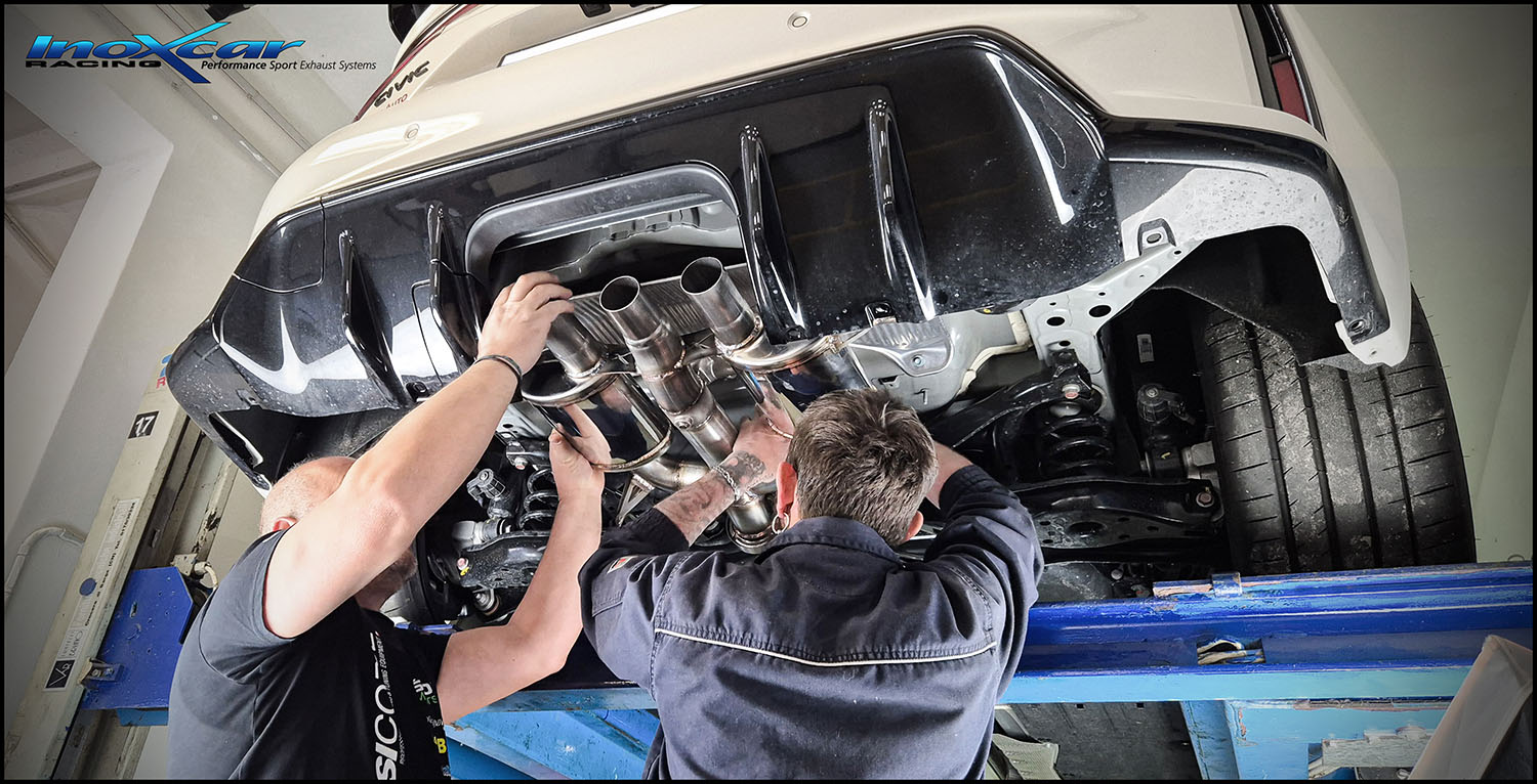 Tube central silencieux + Silencieux arrière avec sorties centrales 3 x diam. 114 RACING + Vanne avec montage électrique de série
