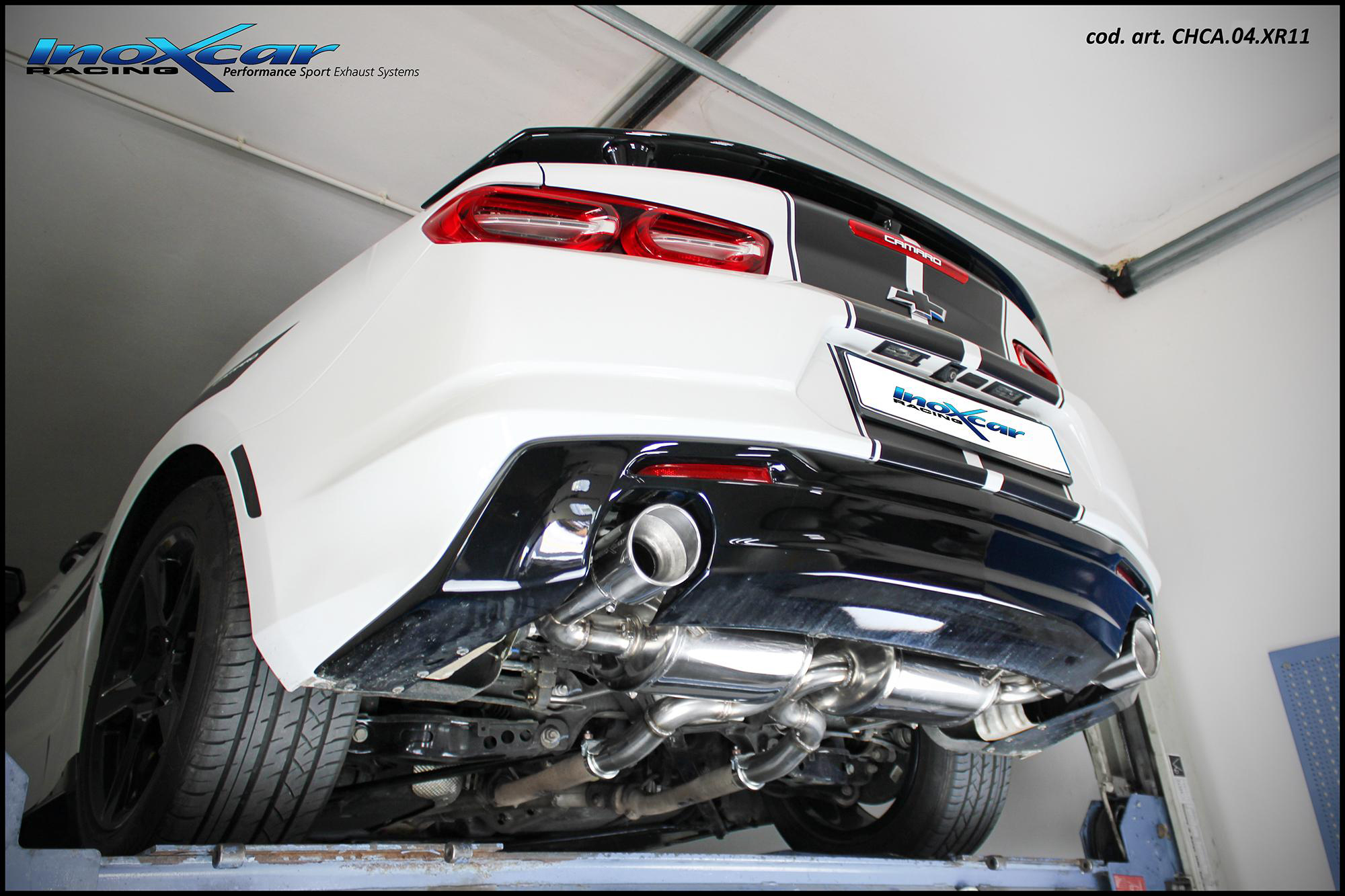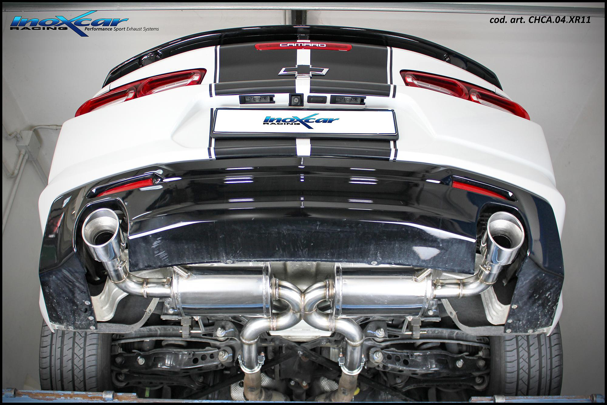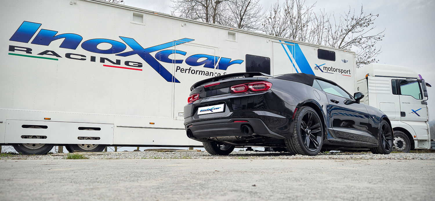 Inoxcar a développé un nouveau échappement arrière pour CHEVROLET CAMARO 2.0T (279cv) 2019, en realizand 3 differents modeles: arrière avec ou sans silencieux, et silencieux arrière avec vanne avec moteur électrique + Télécommande